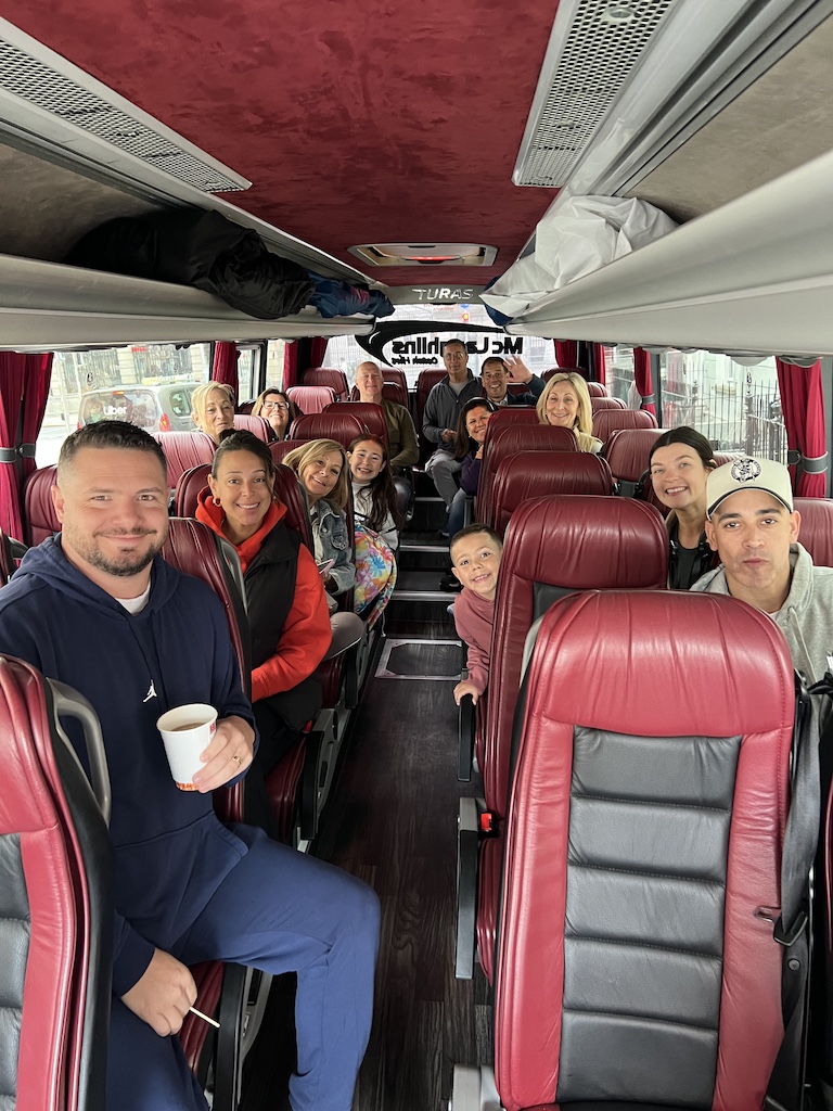 There were 12 of us from the wedding on the flight from Boston and Debbie hired two drivers to pick us up at the airport in vans and bring us and our enormous bags to our hotel in Dublin. The next day we were fortunate that the groom arranged a driver from McLaughlin’s Transportation to stay with us for the next few days to go from our Dublin hotel to Belfast, Northern Ireland and to all the sites there. Two late comers joined us the morning we left for Belfast. Brendon was our driver, and he was wonderful. He brought us to the Titanic Museum on the first day and the next day to Bushmill’s Distillery, Giant’s Causeway and Carick-a-rede Rope Bridge. On day 3, he left with the immediate family members to get them to Castle Leslie for the wedding rehearsal while Jim rented a van for the 6 of us to get to the castle the next day for the welcome dinner. We kept the van for 8 of us to tool around until we drove to the airport to depart for Scotland 6 days later. We did have some concerns with the van, such as parking in the cities. We were able to find either overnight street or lot parking everywhere we went without much trouble and without costing a fortune. Jim is a retired firefighter, so he has no fear of driving larger vehicles under stress, so it made him the perfect choice to chauffer us. None of the rest of us had any interest in taking on that task.