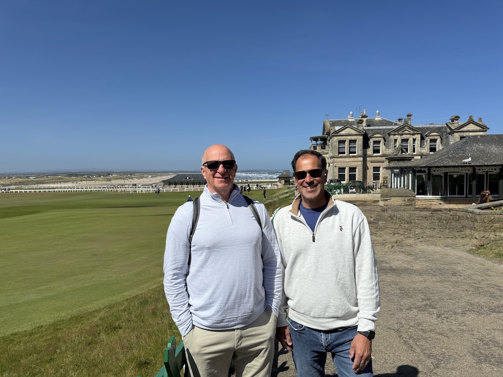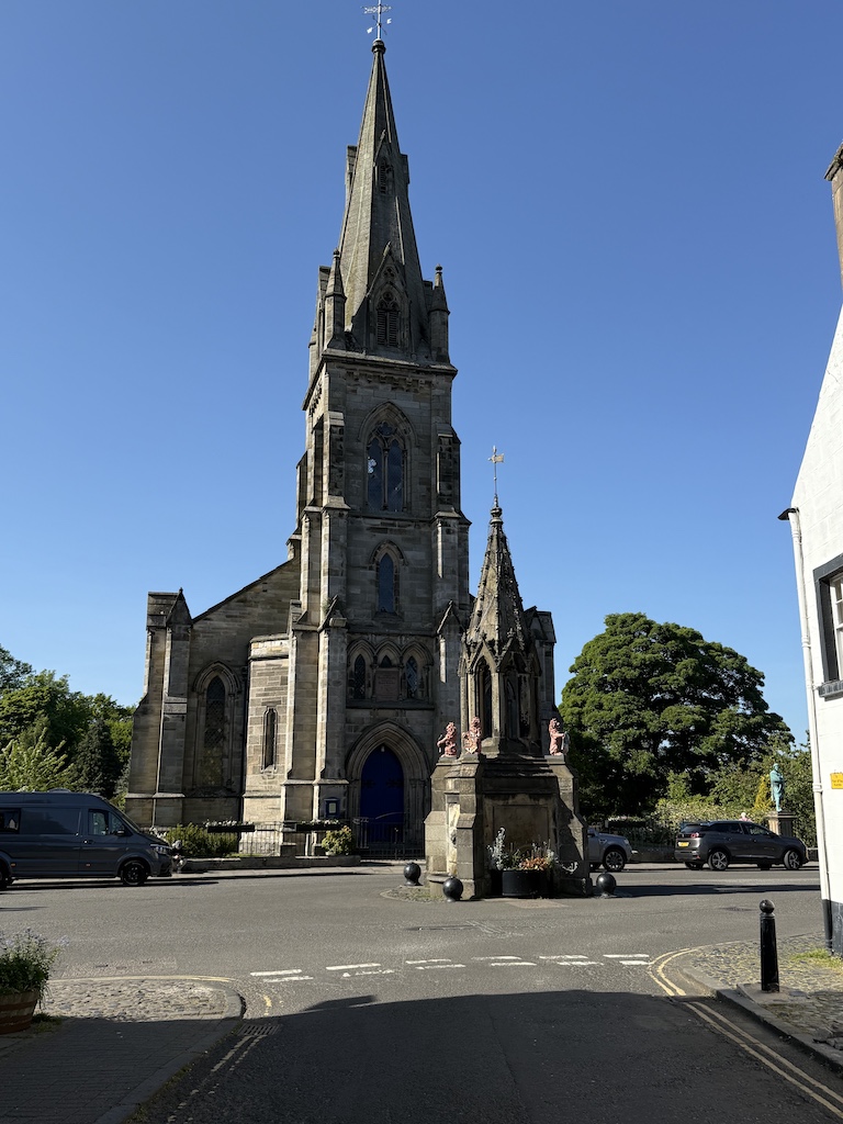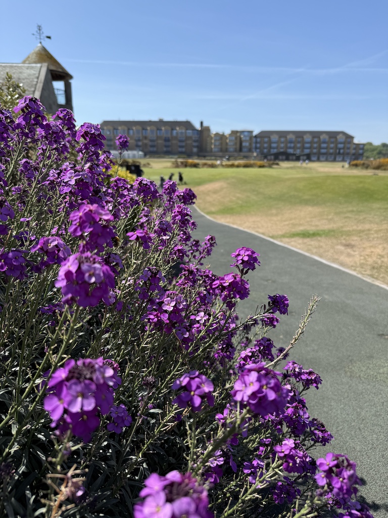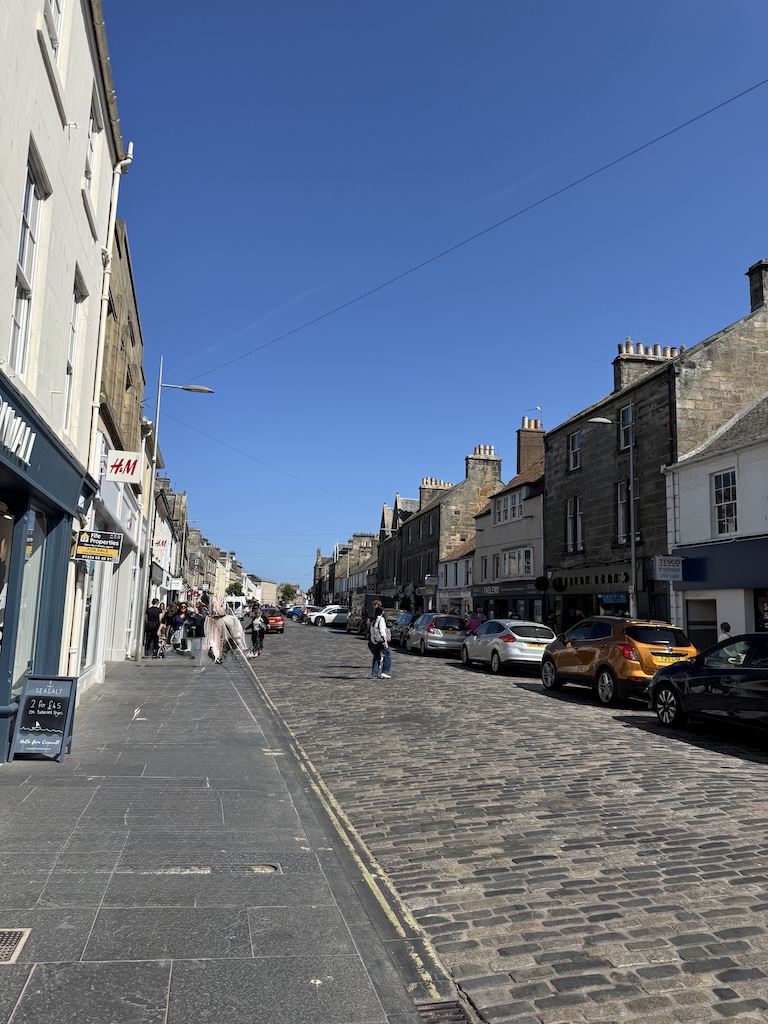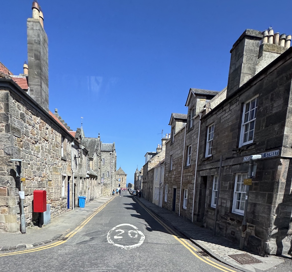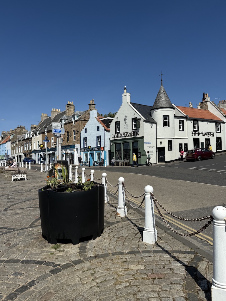 The next tour was with a different tour company to St. Andrews. Steve and Jimmy were very excited about this tour. They played a putting round, and Jim got a hole in one (on the putting green – not on the actual course)! We had lunch in the club house at St. Andrew’s, and the pub was as beautiful as the food was delicious. There were views of the course on one side and the ocean on the other. We walked around the town adjacent to the course, and it was a nice walk. We stopped in a tiny fishing village which was picturesque and in the town of Falkland.