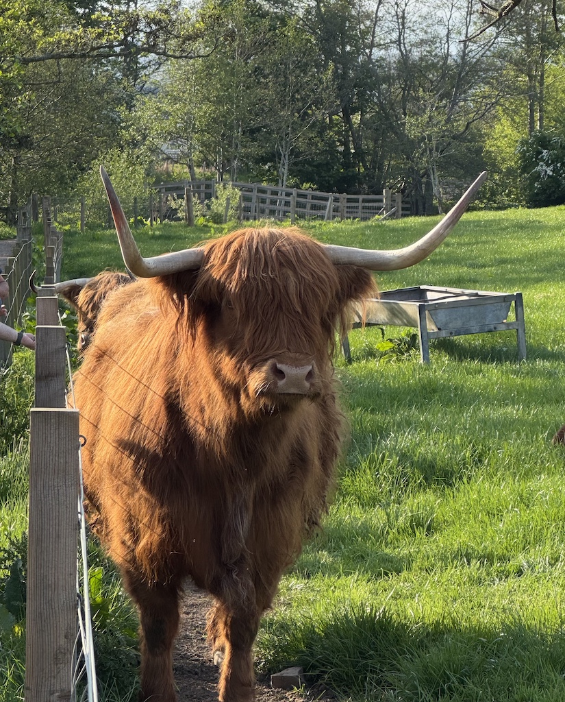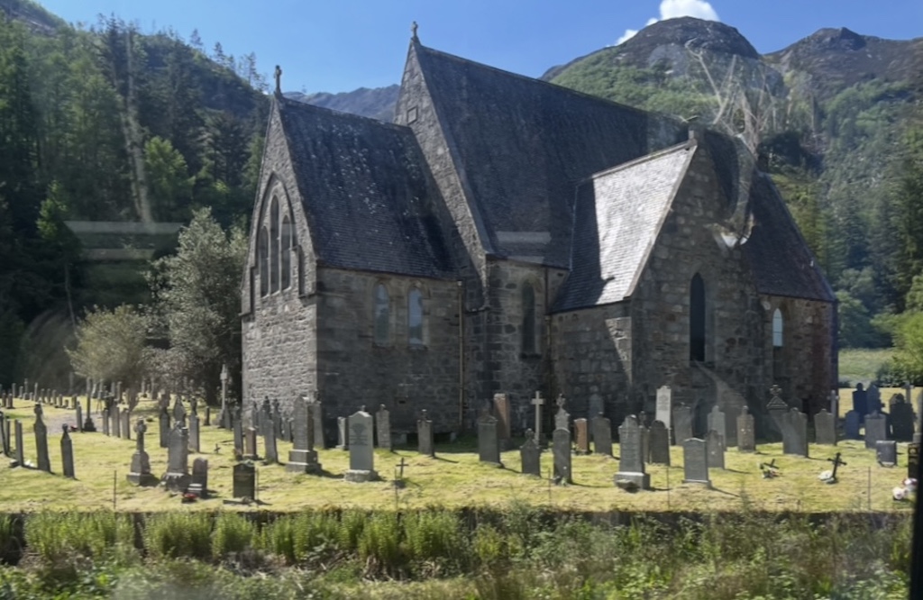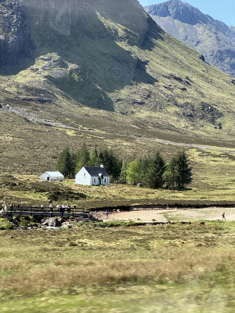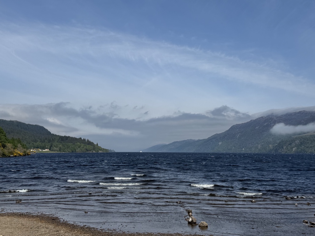 Debbie booked us a couple of tours. This day we did the Highlands, Glencoe and Loch Ness via Heart of Scotland Tours, Ltd. We had a wonderful native tour guide, Angela, who we loved. She was very knowledgeable about all aspects of the tour and very friendly. This was a long day as we covered a lot of ground. We got to see the gorgeous mountains and valleys of the highlands and even saw a bagpiper in the mountains. We visited a centuries old home in Glencoe. Loch Ness was a favorite destination as I got some nice photos for the grandkids who are intrigued by the Loch Ness mystery. Jim tried fish and chips at Monster Fish & Chips Co. at Loch Ness. He thought it was good, just a bit greasy. We drove by some beautiful scenery with castles in the background and had a photo-op with highland cattle.