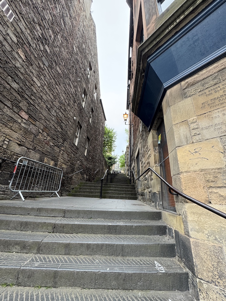 What I didn’t realize about Edinburgh is it is a city of perpetual stairs. Each street in Edinburgh is set apart from the one before it by altitude. In order to traverse the landscape, the Scotts put in alley ways called “close” and quite often very steep stairs. When meandering throughout Edinburgh, you can either hike up a zillion flights of stairs or walk the long way around to avoid the hills and steps. I often took the long way!