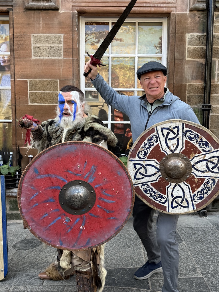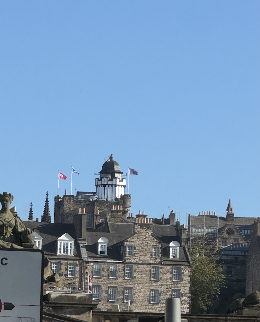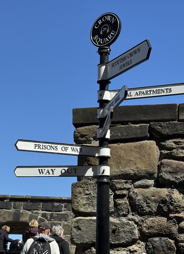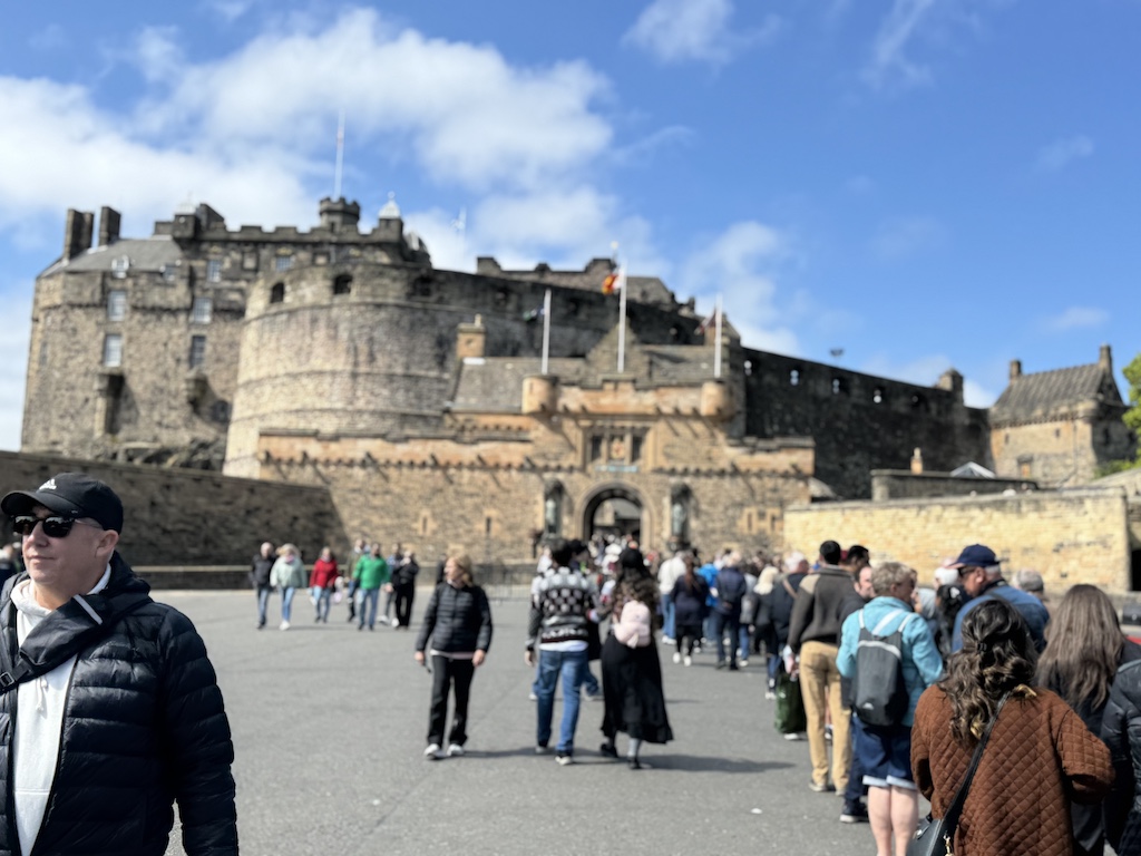 Edinburgh Castle was a nice take. We happened to be there during their daily cannon blast at 1:30 pm which Jim loved. The castle is like a little walled town with different buildings. One building is a museum of war which was interesting. Another building houses the “crown jewels” that you can wait in line to walk past as you are viewing but you cannot take any photos.