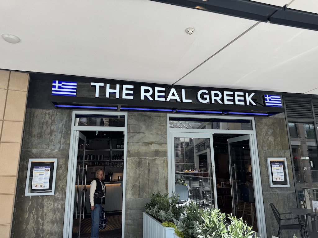 We found The Real Greek in a multiple level food court. Our experience here was amazing. Our waiter was so friendly and was very patient with all of us trying to order. Seven of the eight of us were in Greece together last fall and fell in love with the food. We thought this would be a great way to cap off yet another successful vacation, and it sure was!